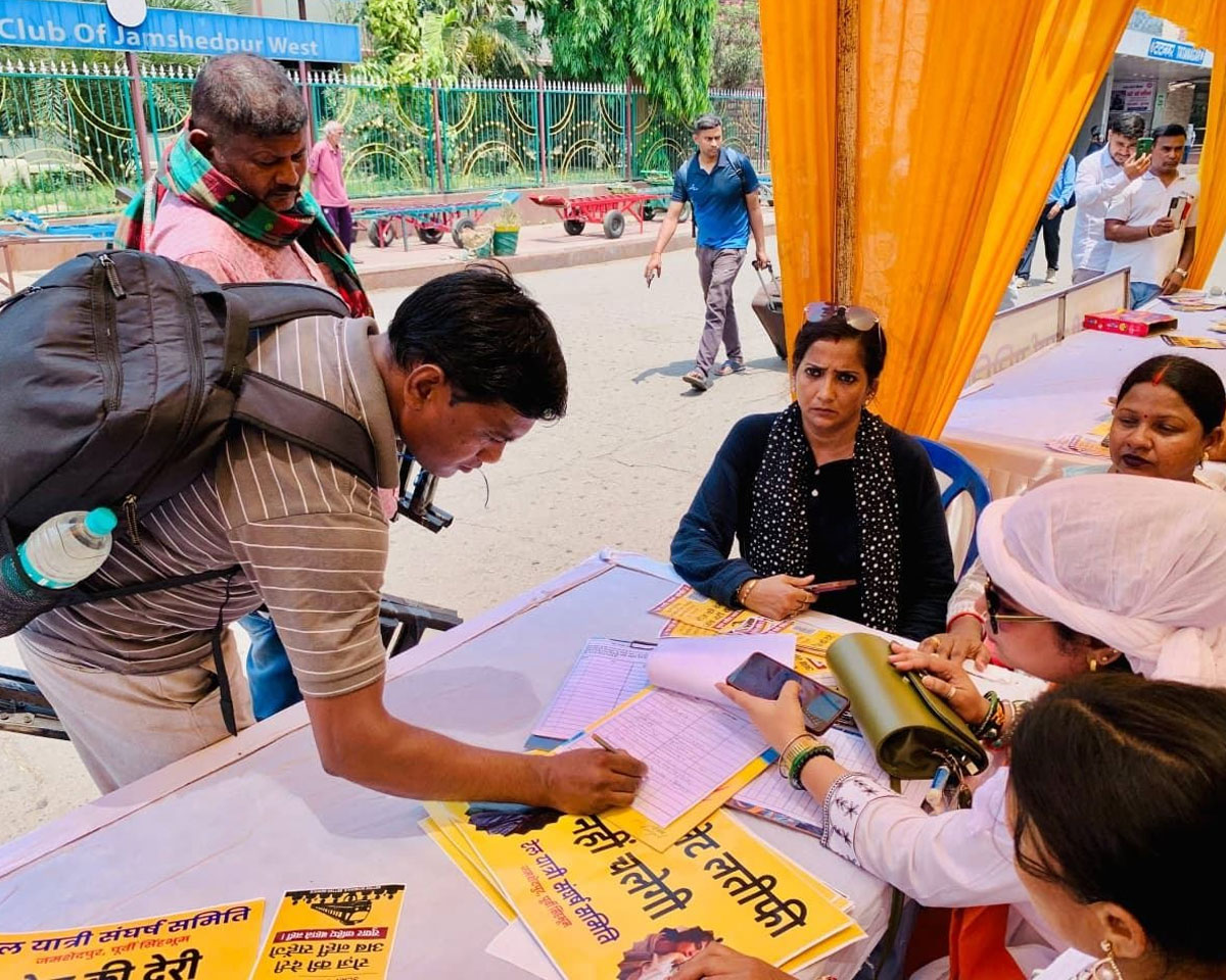 ट्रेनों की लेटलतीफी के शिकार यात्रियों से फार्म भरवाने का काम दो स्थानों पर चला। पहला स्थान था टाटा नगर जंक्शन के ठीक सामने, प्लेटफार्म नंबर एक पर जाने के रास्ते में। दूसरा स्थान था, टाटानगर जंक्शन के ठीक बाएं, जहां टिकट बुकिंग कार्यालय है। इन दोनों स्थानों पर लोगों ने स्वेच्छा से फार्म भरे। कई लोग तो क्यूआर कोड स्कैन करके डिजिटली अपना समर्थन दे रहे थे।